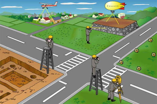 街区(事業計画で定められた公共施設用地及び施行地区の地区界に囲まれた宅地の区域)の位置及び形状を定め、街区の面積並びに公共施設用地の面積を算出し、街区点を現地に標示して確保する作業をいう。