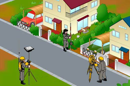 施行地区の地区界を測定し、地区界点の位置及び地区総面積を求める作業をいう。